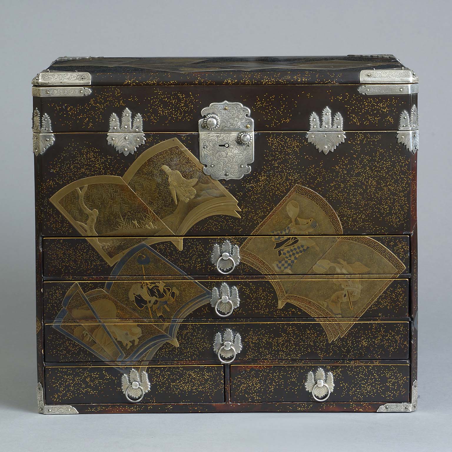 Chinese Export Gilt Decorated Black and Red Lacquer Cabinet on Stand