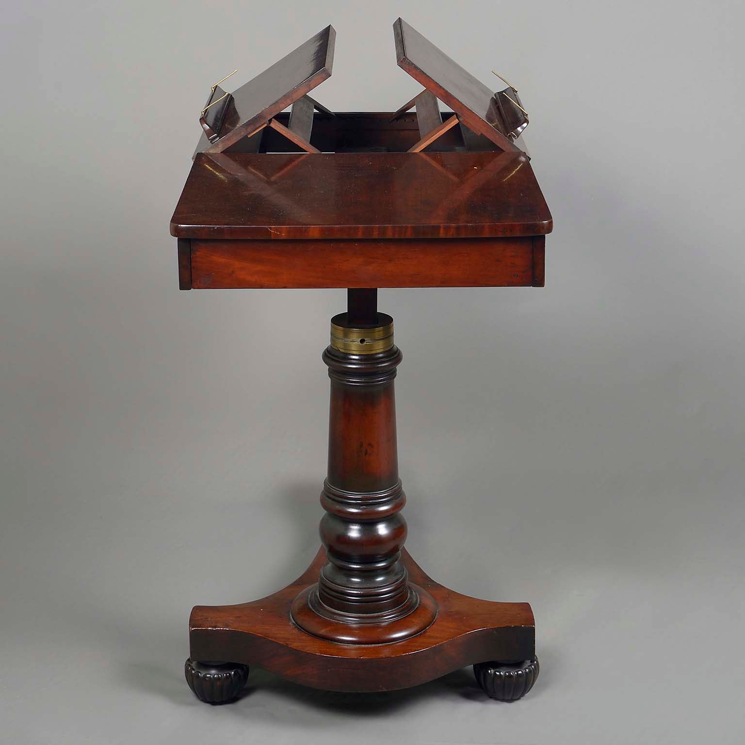 Mahogany and Brass Mechanical Music/Reading Stand of Adjustable Height in the Manner of Gillows