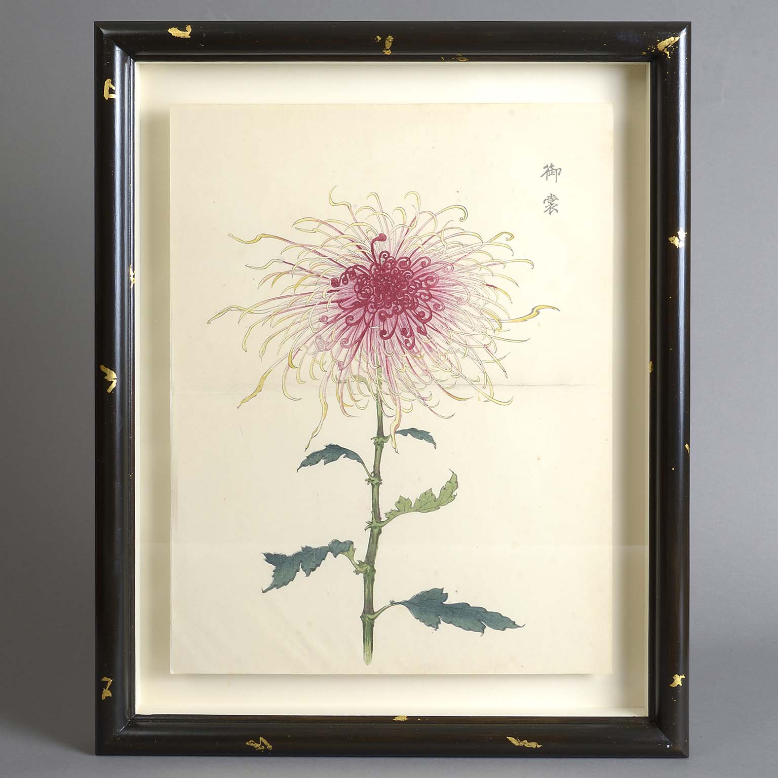 These original wood block prints on washi paper are from ‘One Hundred Chrysanthemums’ by Keika Hasegawa.