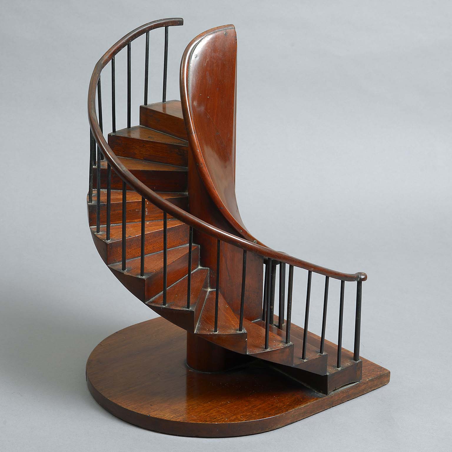 This well executed Cuban mahogany model is skilfully designed and constructed with a finely worked banister supported on metal uprights.