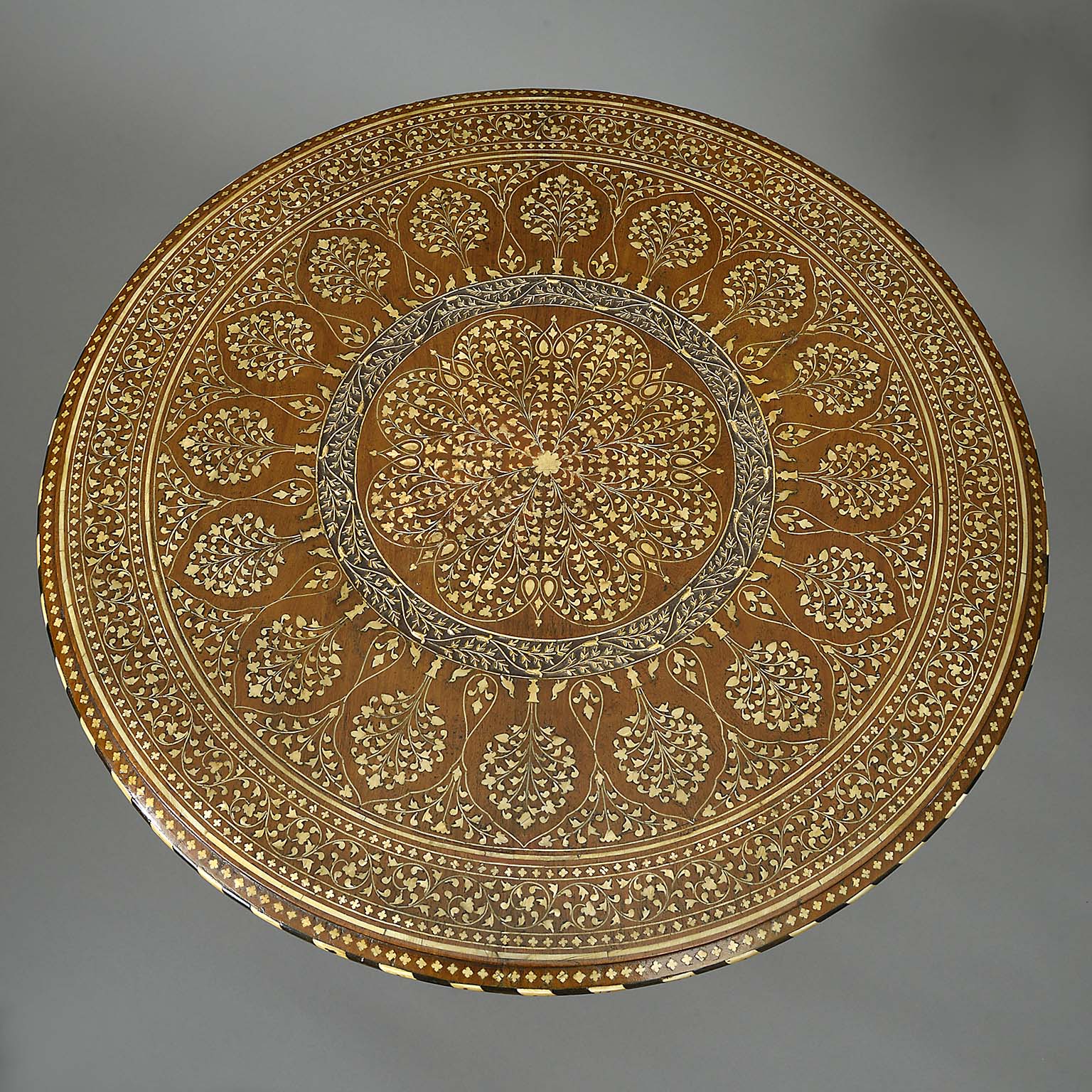 Rare Hoshiapur Bone Inlaid Circular Tea Table in the Mughal Tradition